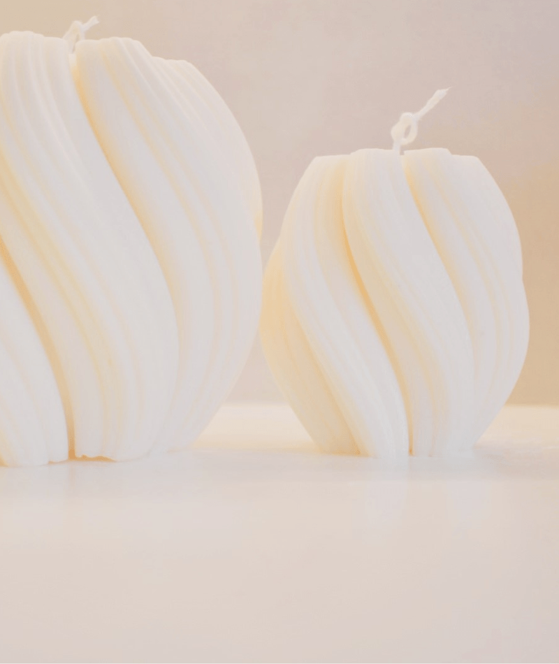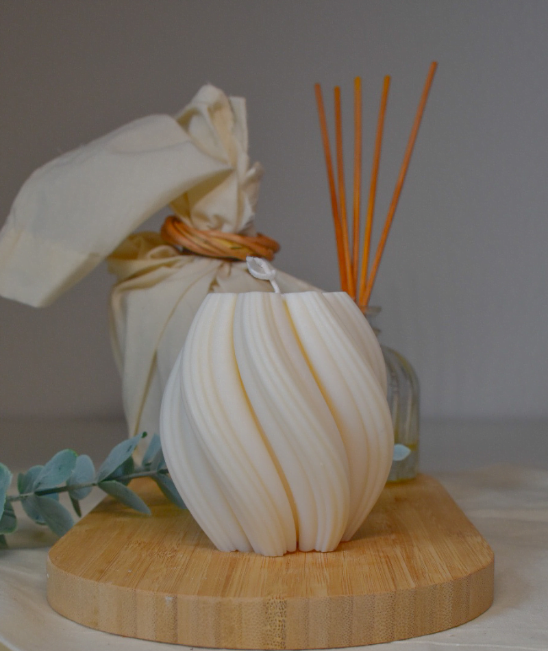 Bougie déco – Petite : en cire de soja 240 g avec un design tourbillonnant : un ajout élégant et parfumé à votre décor. Une bougie unique et raffinée.